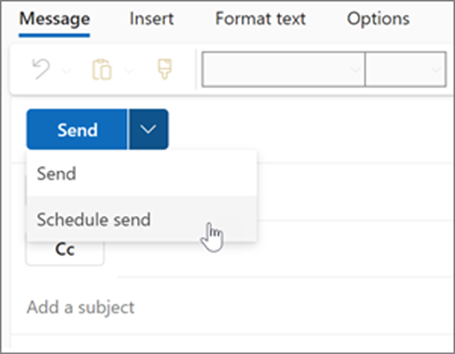 In today’s hybrid work world, your day might be someone else’s night, so you don’t want to send an email to someone in the middle of the night. With the new Outlook, it’s simple to send an email when you want to. Just select the dropdown arrow next to Send and choose Schedule send.